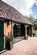 Maar dat is nog niet alles! Om ervoor te zorgen dat de familie in alle weersomstandigheden kan genieten van het prachtige uitzicht op hun meer dan 50 verschillende appelbomen, hebben we een glazen schuifpui geplaatst. Dit geeft hen de mogelijkheid om te ontspannen en te genieten van het buitenleven.